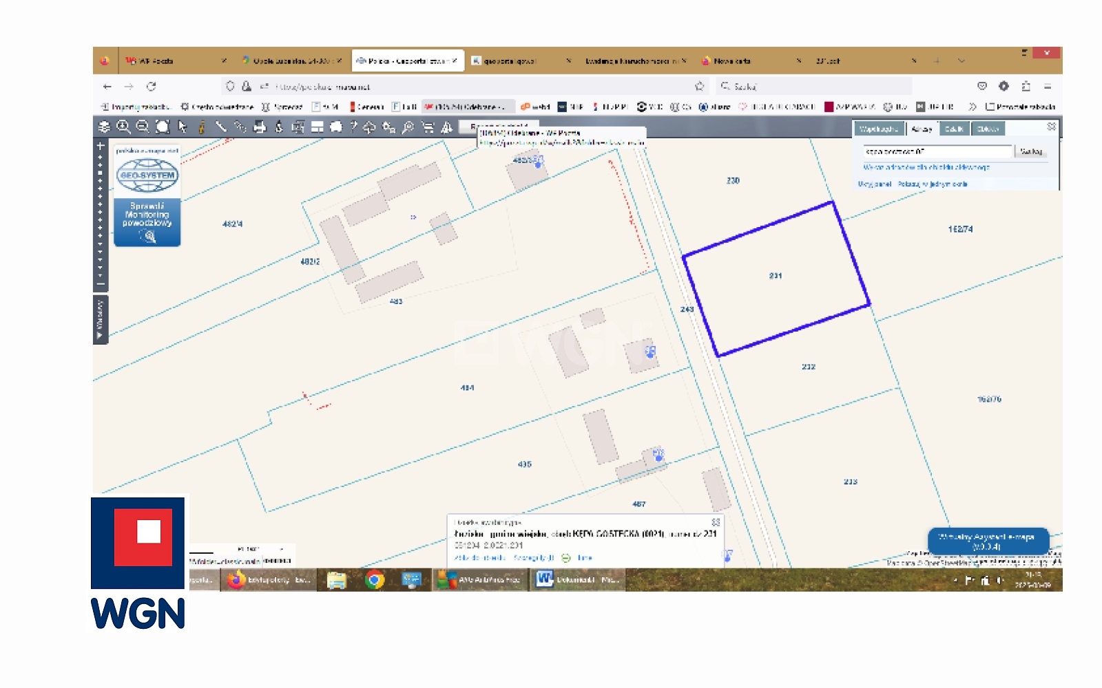 Zabudowana działka nr 484 o powierzchni 41 arów, o II i III klasie gruntów.